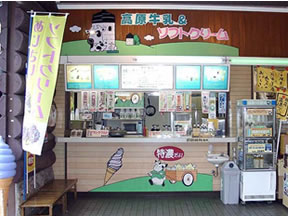 薄紫色のソフトクリームの看板が目印のスタンド喫茶です。 登山電車の別名あじさい電車にちなんだ “あじさいソフトクリーム”は一年通じてお楽しみ頂けます。お気軽にお立ち寄りください。